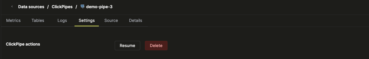 - На вкладке Data Sources выберите MongoDB ClickPipe, который вы хотите приостановить.